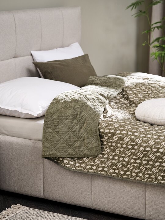 Throw BONDEROSE 130×170 fleece beige elegantly over couches, STAVKLOKKE 130×170 taupe adds subtle texture, and VALMUE 240×260 beige gives beds a hotel-like finish.