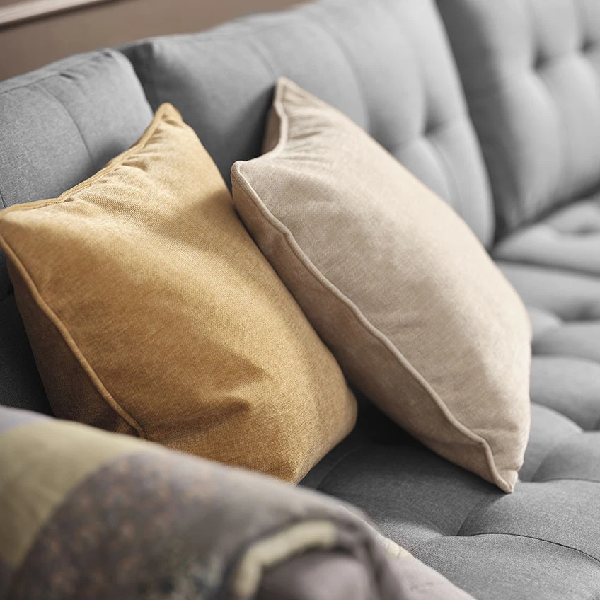 The HORNFIOL cushion is a beautiful addition to any seating arrangement. Made from chenille fabric, the cushion brings a comfortable, tactile element to your seating area on top of its visual calmness and comfort. Its soft colours complement the overall theme of the spring décor and natural materials of the new Nordic Mood collection very well.