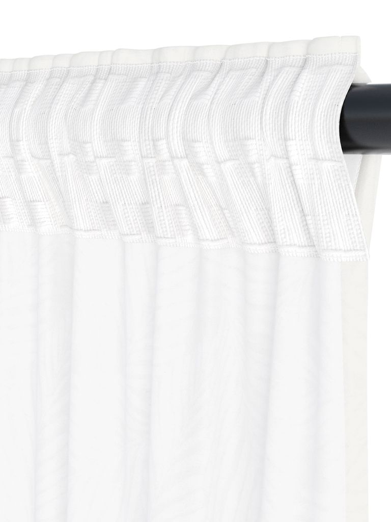 Polyester microfibre. With pole pocket and curtain tape. 1 x W140 x H300 cm