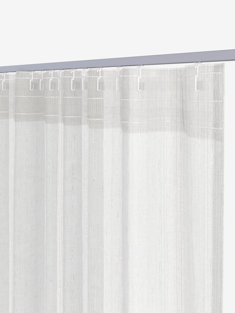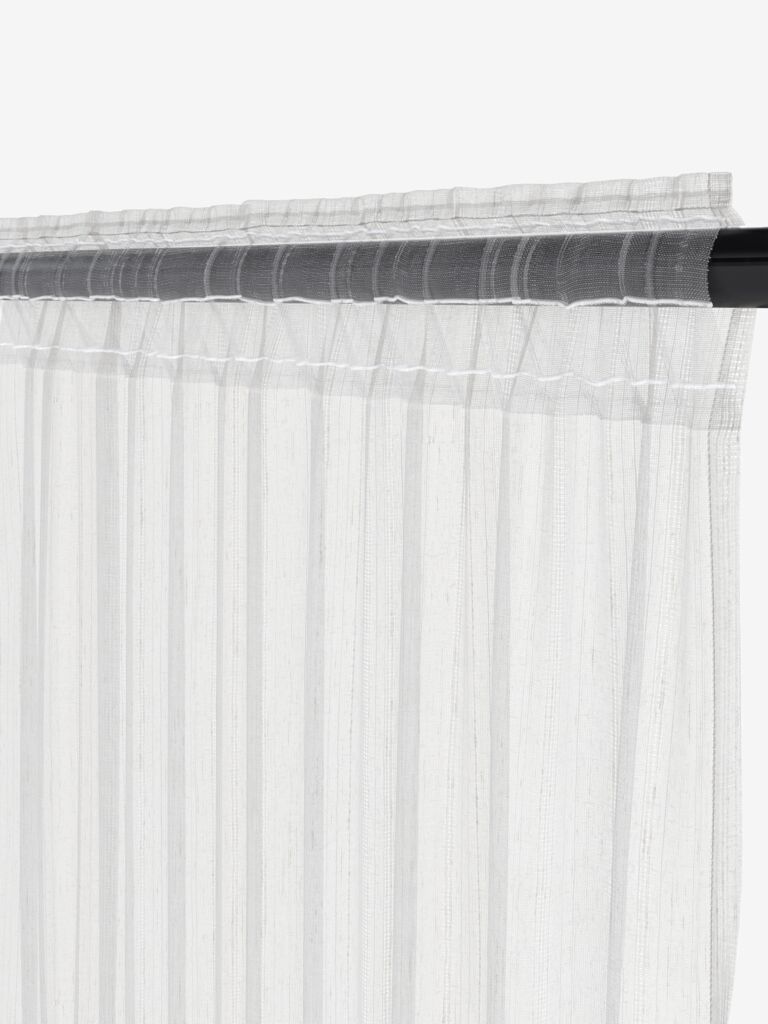 Polyester/linen. With pole pocket and curtain tape. 1 x W140 x H300 cm