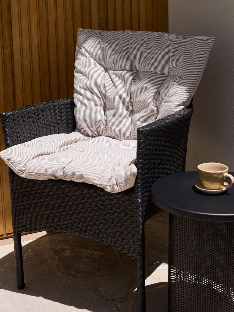 | Seat cushion | Fabric: 58% cotton/42% polyester (100% recycled), Filling: 100% cotton, fibre, Inner cushion: 100% polypropylene, Wash: No, Bleaching: Do not bleach, Tumble-dry: Do not tumble dry, Ironing: Do not iron, Dry clean: Do not dry clean, Instruction: Spot clean only |