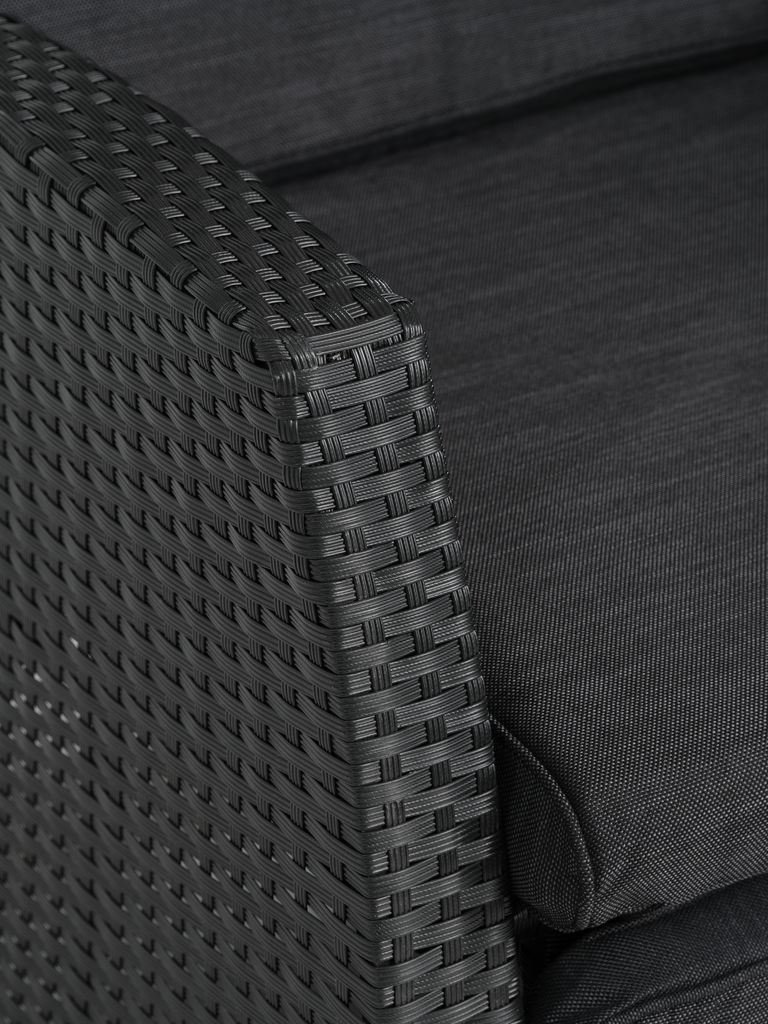 | Material | Frame: Aluminium, Back: Polyrattan (polyethylene), Seat: Polyrattan (polyethylene), Armrest: Polyrattan (polyethylene), Legs: Aluminium, Polyrattan (polyethylene) |