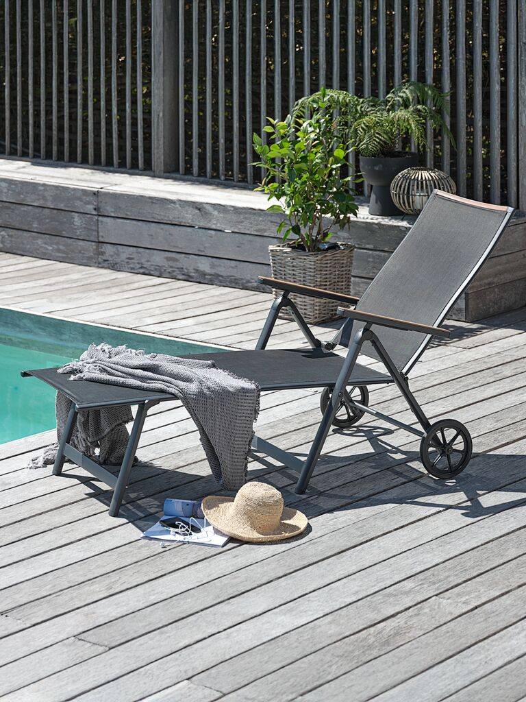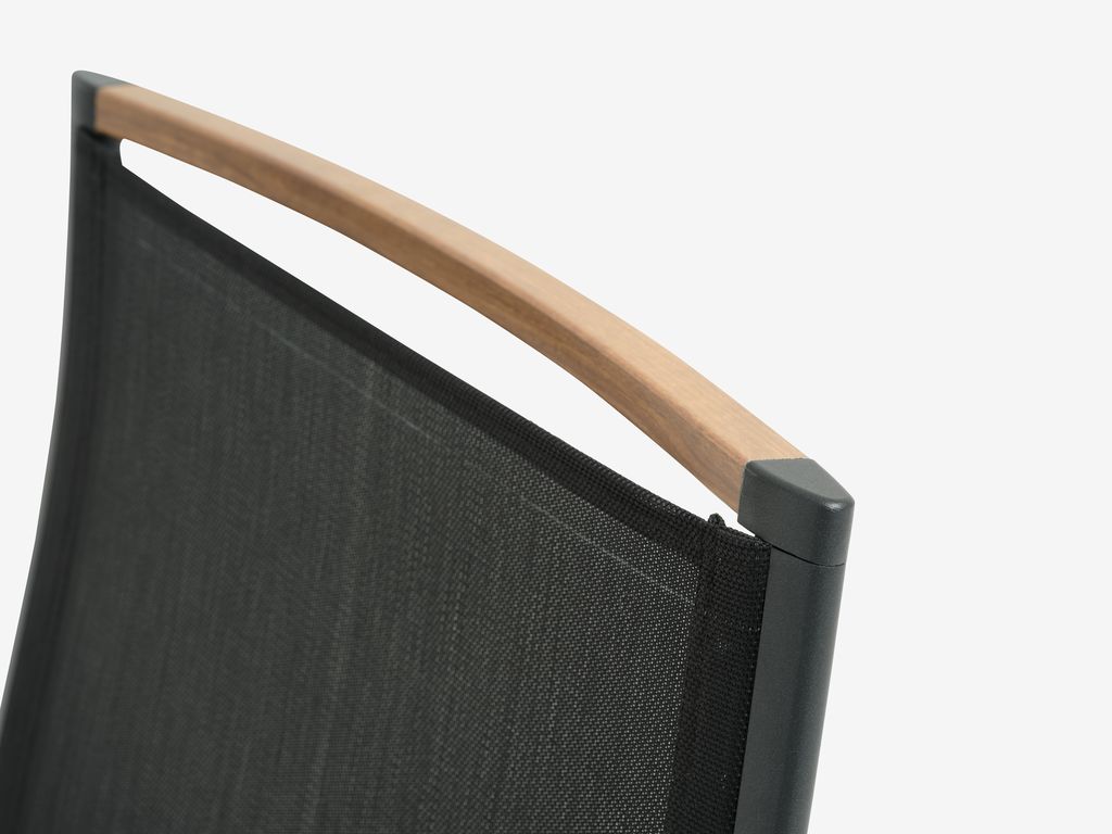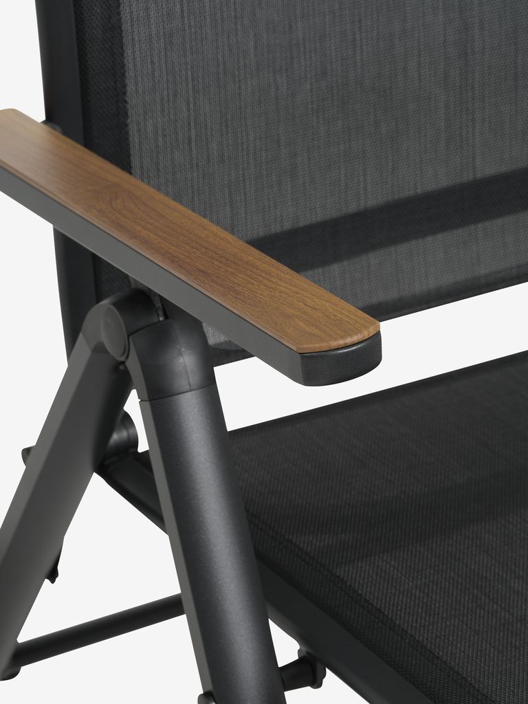| Material | Frame: Aluminium, Back: Textiline (polyester/PVC), Seat: Textiline (polyester/PVC), Armrest: Aluminium, Legs: Aluminium |