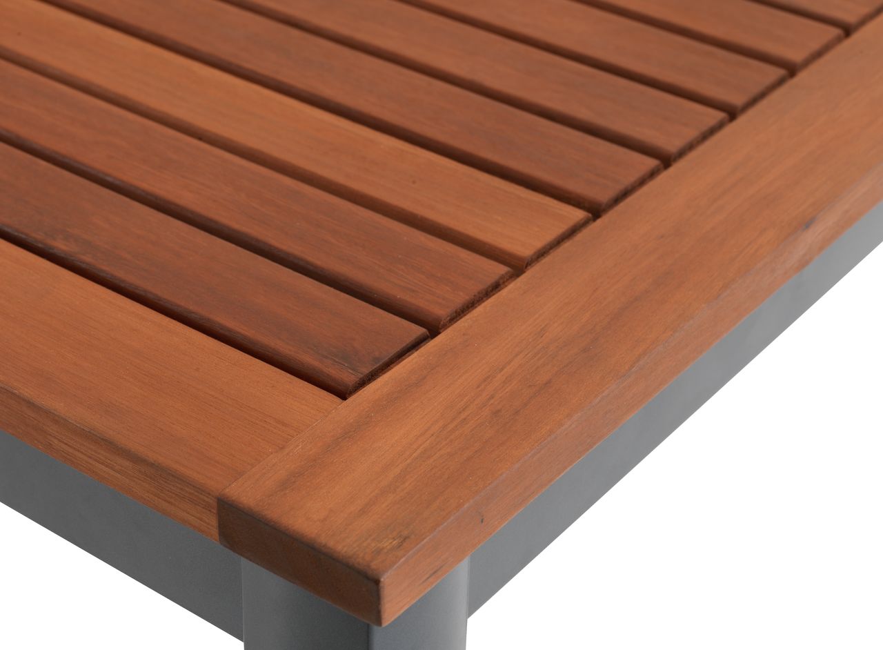 | Material | Frame: Aluminium, Table top: Solid eucalyptus, Legs: Aluminium |