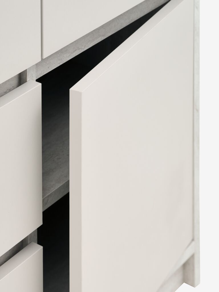 | Material | Front: Particle board, Top: Particle board, Bottom: Particle board, Side: Particle board, Legs: ABS plastic, Back: HDF (High density fibreboard), Frame: Particle board, Surface: Melamine, Shelf: Particle board |