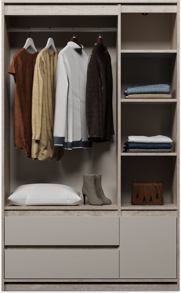 | Includes | 1 hanging rail 4 shelves, 2 drawers, 4 doors |