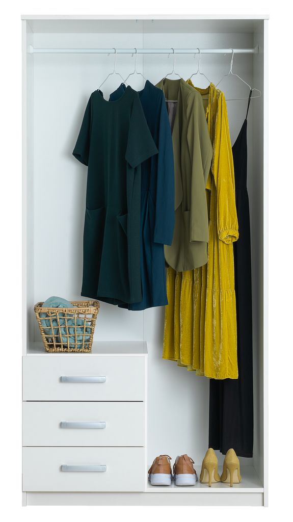 | Includes | 1 hanging rail, 1 mirror, 2 doors, 3 drawers |