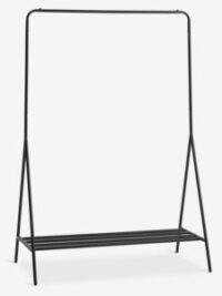 When traditional wardrobes aren't an option, embrace Scandinavian simplicity with a sleek clothes rail. This chic solution keeps your wardrobe visible and accessible, and is available in various materials, including metal and wood, each featuring at least one pole or rail. Ideal for walk-in closets, bedrooms, or hallways, clothes rails are perfect for rooms with unique angles or sloped ceilings, offering the ambiance of a custom dressing area.